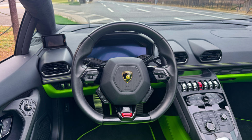 The Lamborghini Huracan Spyder in grey is a striking convertible supercar that blends raw performance with refined elegance. Powered by a naturally aspirated 5.2-liter V10 engine producing 610 horsepower, it accelerates from 0 to 60 mph in just 3.4 seconds, delivering an adrenaline-filled driving experience. At the touch of a button, the soft-top roof retracts smoothly, letting you enjoy the sound of the V10 and the thrill of open-air driving.