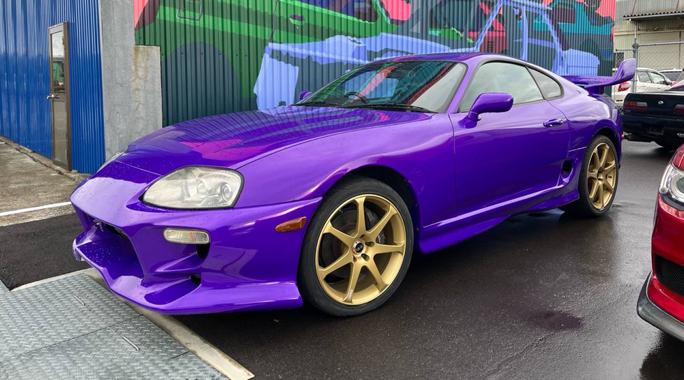 This car features the legendary 2JZ-GTE engine, a 3.0-liter inline-6 twin-turbo powerhouse, paired with a 6-speed Getrag manual transmission for an exhilarating driving experience. Power is sent to the rear wheels, delivering precise handling and a true RWD sports car feel. The exterior is enhanced with an aggressive Veilside front bumper and a striking rear spoiler, ensuring it stands out both on the road and at car meets. Inside, custom black and dark mocha seats provide a luxurious touch, blending comfort with a unique aesthetic.